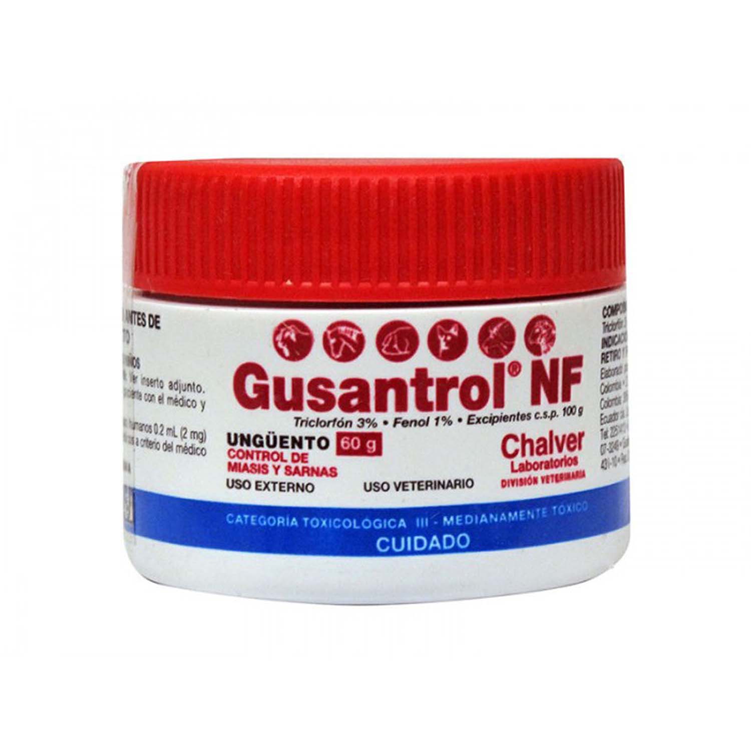 Gusantrol Pomada es un ectoparasiticida de uso externo diseñado especialmente para el tratamiento y control de larvas causantes de miasis en una variedad de especies animales incluyendo bovinos, caninos, equinos, caprinos, ovinos y porcinos. Su formulación actúa efectivamente contra diversas larvas de moscas, además de ofrecer propiedades repelentes, desinfectantes y cicatrizantes, lo cual lo convierte en un aliado ideal para el manejo de gusaneras, nuche y escabiosis en animales.